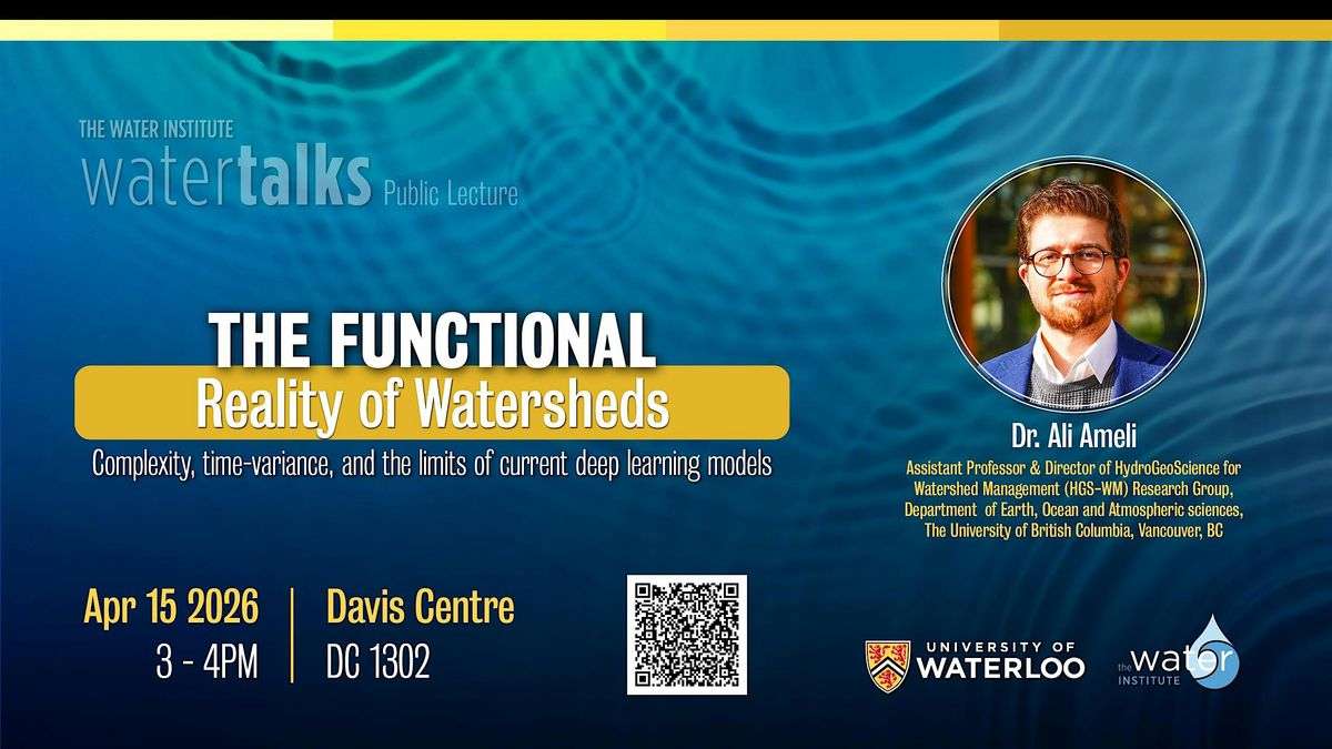 As part of the Water Institute's WaterTalks lecture series, Ali Ameli, Professor & Director of HydroGeoScience for Watershed Management (HGS-WM) Research Group, UBC, will present The functional reality of watersheds: Complexity, time-variance, and the limits of current deep learning models.