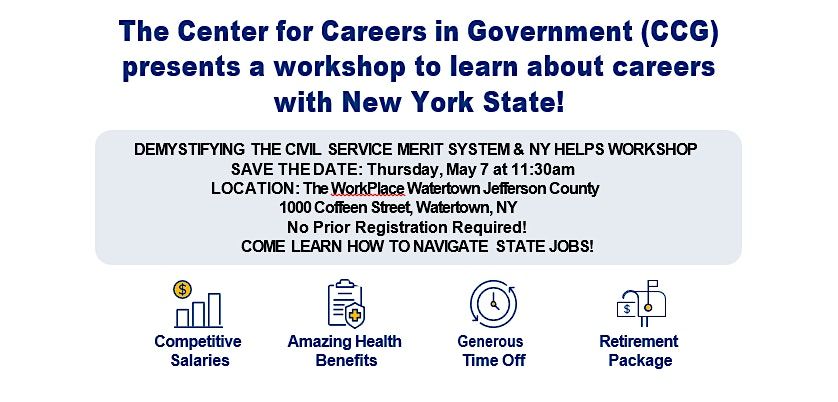 Attendees will get background information on the merit system, a review of appointment types, overview of the various agencies, a review of the exam process, learn how to access and navigate the necessary websites, and an overview of NY HELPS.