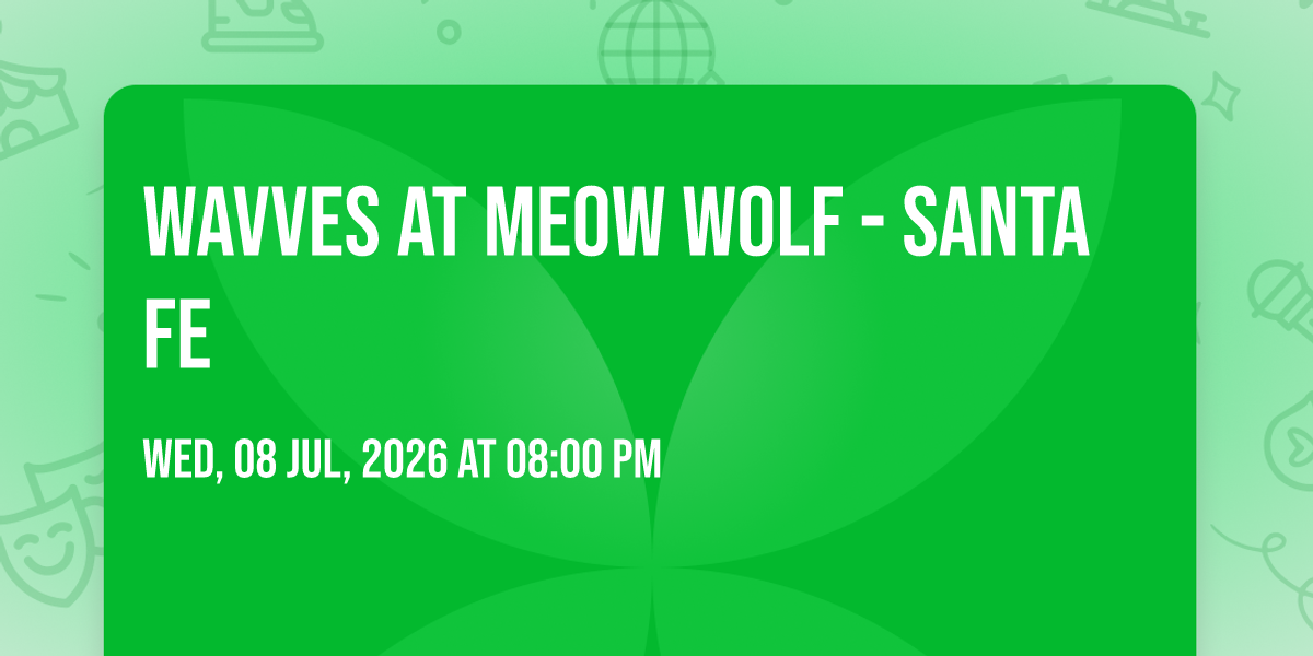🎉 Welcome to Wavves at Meow Wolf - Santa Fe, where dreams come alive and possibilities are endless! 🏛️ Join us at Meow Wolf - Santa Fe in the heart of Santa Fe, NM for an event that defies expectations. 📅 On July 8th, 2026 at 08:00 PM, be part of something truly extraordinary as we bring together innovation, entertainment, and pure magic. ✨ Every aspect has been carefully designed to ensure an unforgettable experience for all our guests. Whether you're seeking adventure, inspiration, or simply a break from the ordinary, this event promises to deliver beyond your wildest dreams. 🎊 Prepare for a journey into the extraordinary!