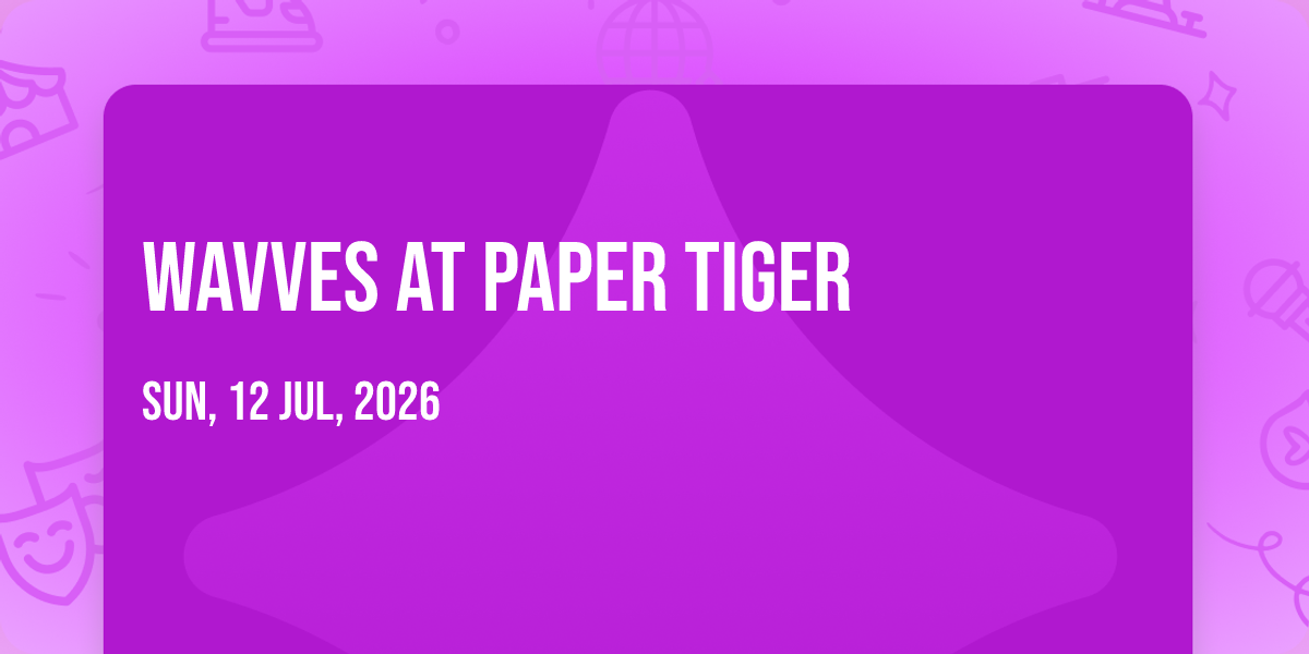 🌟 Be part of history at Wavves at Paper Tiger, an extraordinary gathering that will captivate your imagination! 🏛️ The prestigious Paper Tiger in San Antonio, TX sets the stage for an unforgettable experience on July 12th, 2026 at 08:00 PM. ✨ They are bringing together the finest elements of entertainment and innovation to create moments that will take your breath away. From the moment you arrive, you'll be immersed in an atmosphere of wonder and excitement. 🎯 This carefully planned event ensures every guest experiences something truly special. 🎊 Early booking is recommended for this must-attend event of the season!