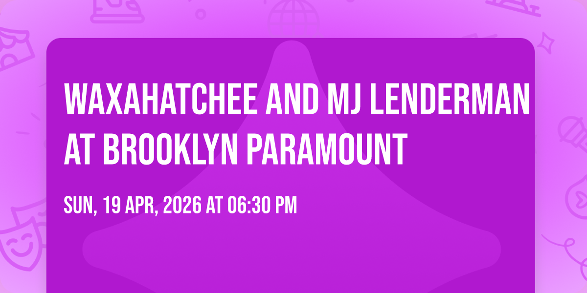🎉 Welcome to Waxahatchee and MJ Lenderman at Brooklyn Paramount, where the impossible becomes possible and dreams take flight! 🏛️ Join us at Brooklyn Paramount in the heart of Brooklyn, NY for an event that will redefine your expectations. 📅 On April 19th, 2026 at 06:30 PM, witness the transformation of space and time into something truly magical. ✨ It's a curated experience combining the best of innovation, entertainment, and community spirit, creating moments that will be remembered for years to come. Whether you're a first-time visitor or a seasoned enthusiast, prepare to be amazed. 🎊 Book now to ensure your place in this unforgettable experience!