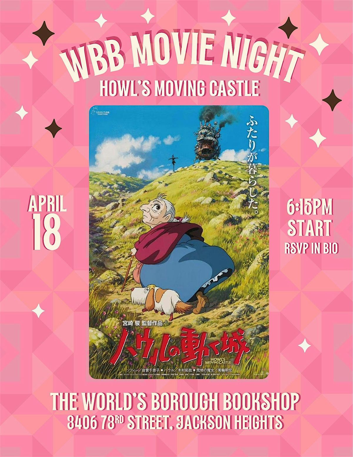 Join us for April's movie night: Howl's Moving Castle, a book adapted into a movie to celebrate Independent Bookstore Weekend!