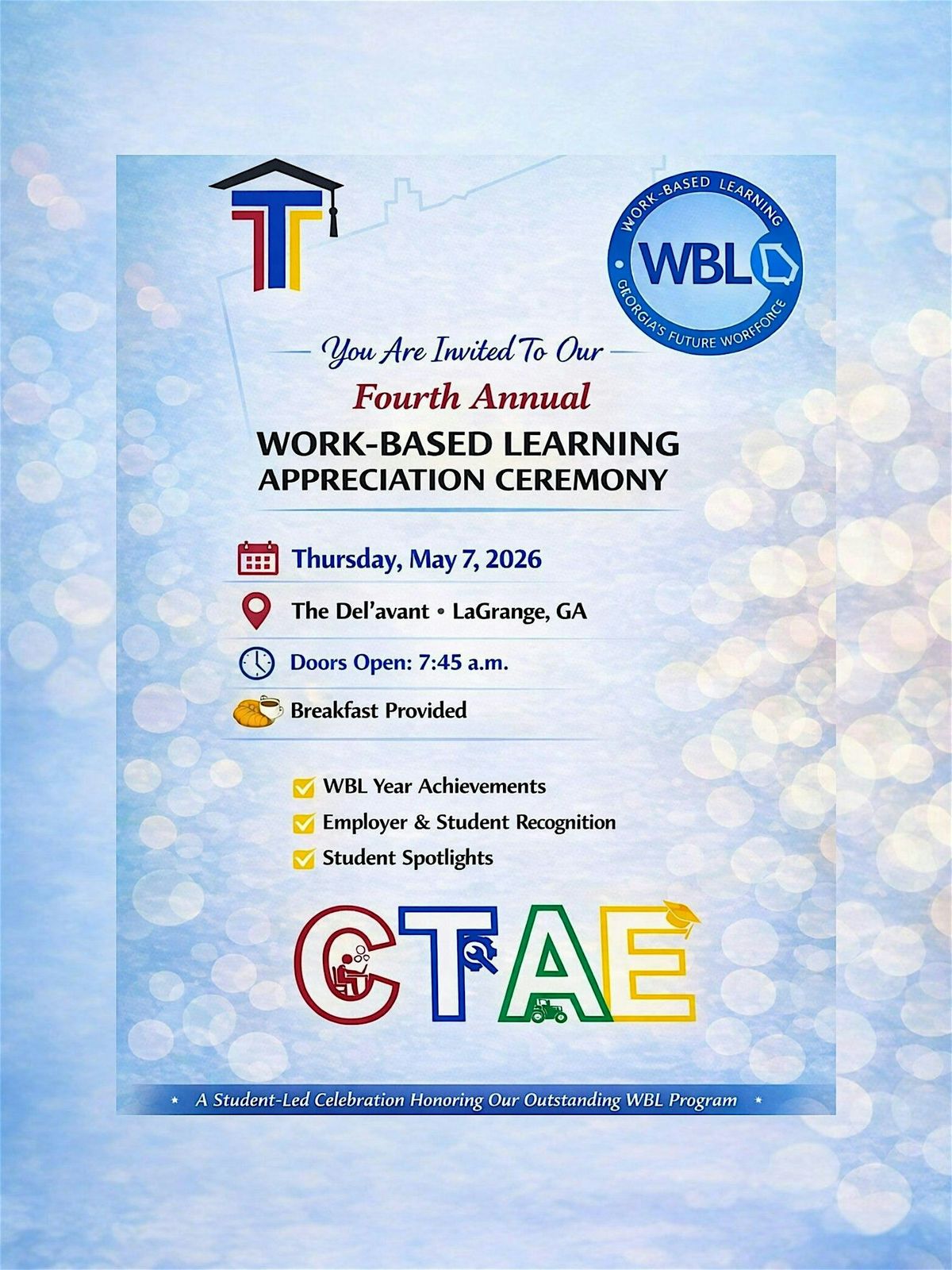 We look forward to celebrating the impact of Work-Based Learning together and recognizing those who help prepare our students for Georgiaβs future workforce.