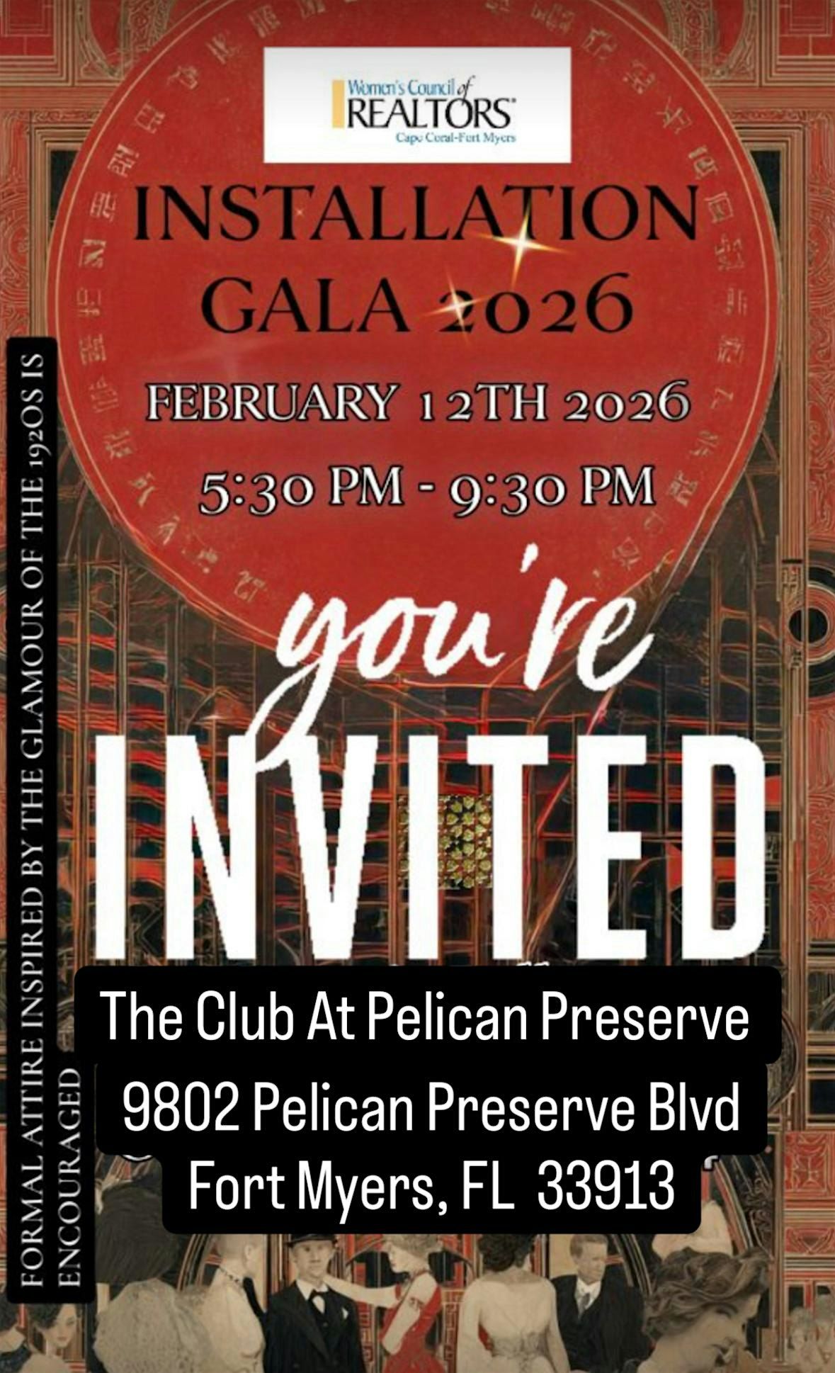 2026 WCR Cape Coral/Fort Myers Installation Gala @ The Club At Pelican Preserve from 5:30 pm to 9:30 pm. 1920's attire suggested.