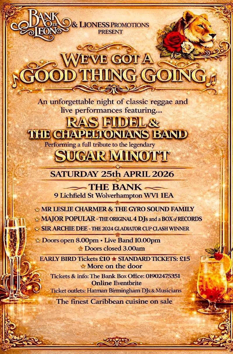 On Saturday 25th April 2026, we welcome Ras Fidel & The Chapeltonians Band to the stage for a full live tribute to the legendary Sugar Minott — one of reggae’s most influential voices. Expect a powerful, heartfelt performance bringing to life the songs, spirit, and message that shaped generations of reggae lovers.