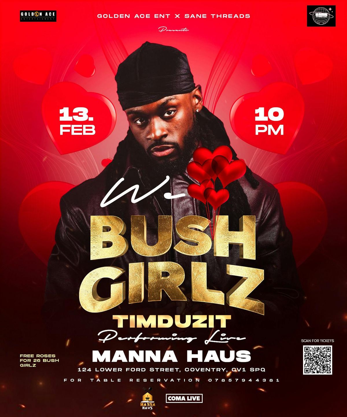 ❤️🔥WE LOVE BUSH GIRLZ 🔥❤️This 13th February 2026, love meets vibes as TIM DUZIT performs LIVE in Coventry 💃🏾🎤