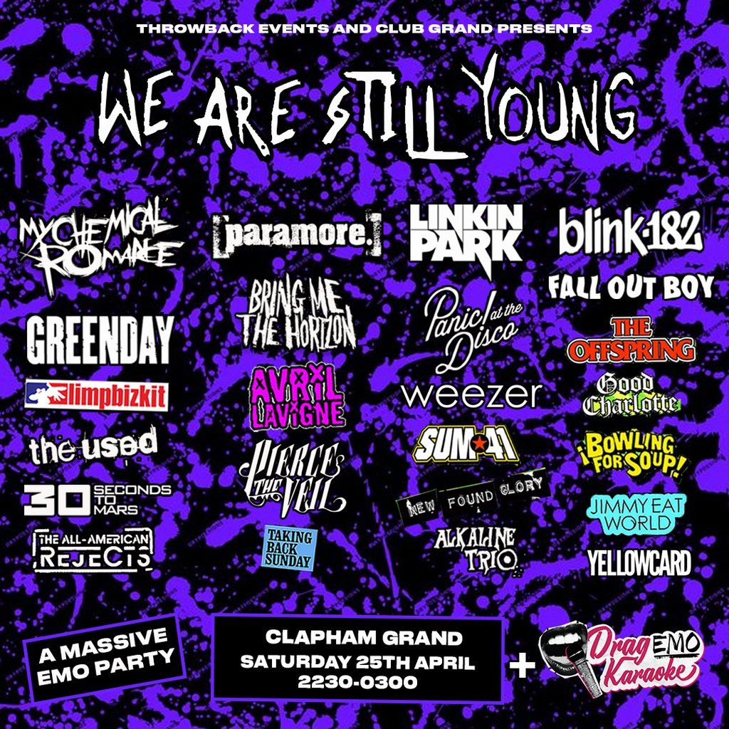 WE ARE STILL YOUNG THE CLUB NIGHT RETURNS, WITH DRAG EMO KARAOKE ON OUR MAIN STAGE, FOR HUGE EMO PARTY!Music Genres : Rock, Alternative, Emo, Pop Rock