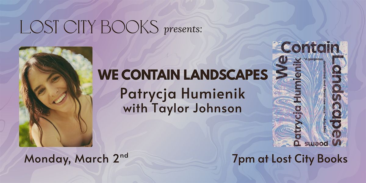 Patrycja Humienik, daughter of Polish immigrants, is a writer, editor, and teaching artist. Patrycja is the author of We Contain Landscapes (Tin House, 2025), selected as a New York Public Library Best New Poetry Book. She has developed writing and movement workshops for Arts+Literature Laboratory, The Seventh Wave, Northwest Film Forum, Henry Art Gallery, and in prisons. Her work can be found in The New Yorker, Gulf Coast, West Branch, Poetry Daily, Poetry Society of America, The Slowdown Show, and elsewhere.