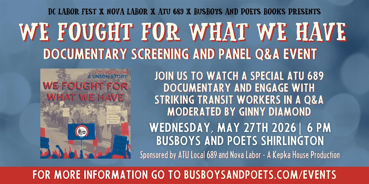NoVA Labor, ATU 689 & the DC LaborFest is hosting this free documentary viewing and panel Q&A event featuring the film We Fought For What We Have: A Union Story