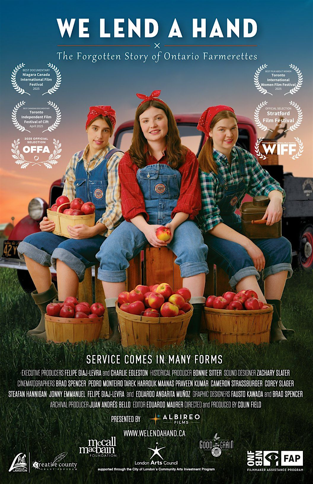 We Lend a Hand: The Forgotten Story of Ontario Farmerettes is a 50 minute documentary film that tells the extraordinary story of the 40,000 young women who volunteered on Canadian farms and helped win the Second World War.