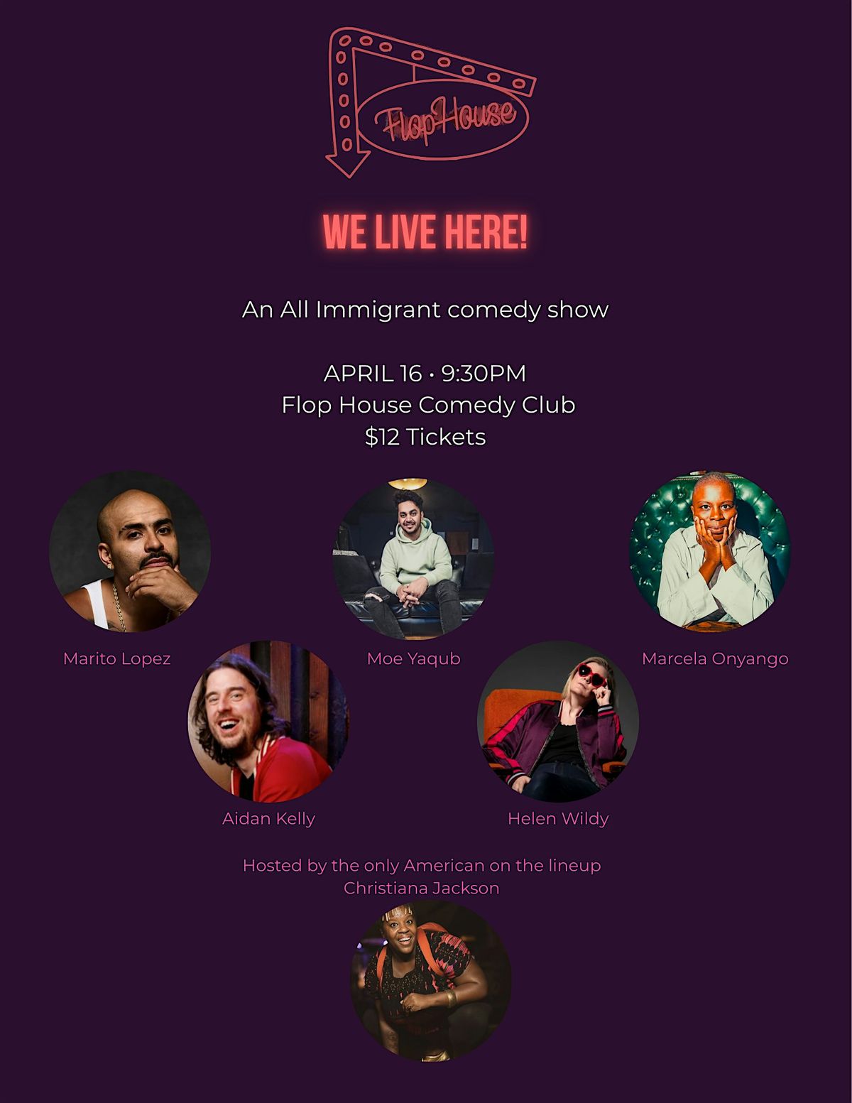 We Live Here!An Immigrant comedy Hosted by the only American on the lineup