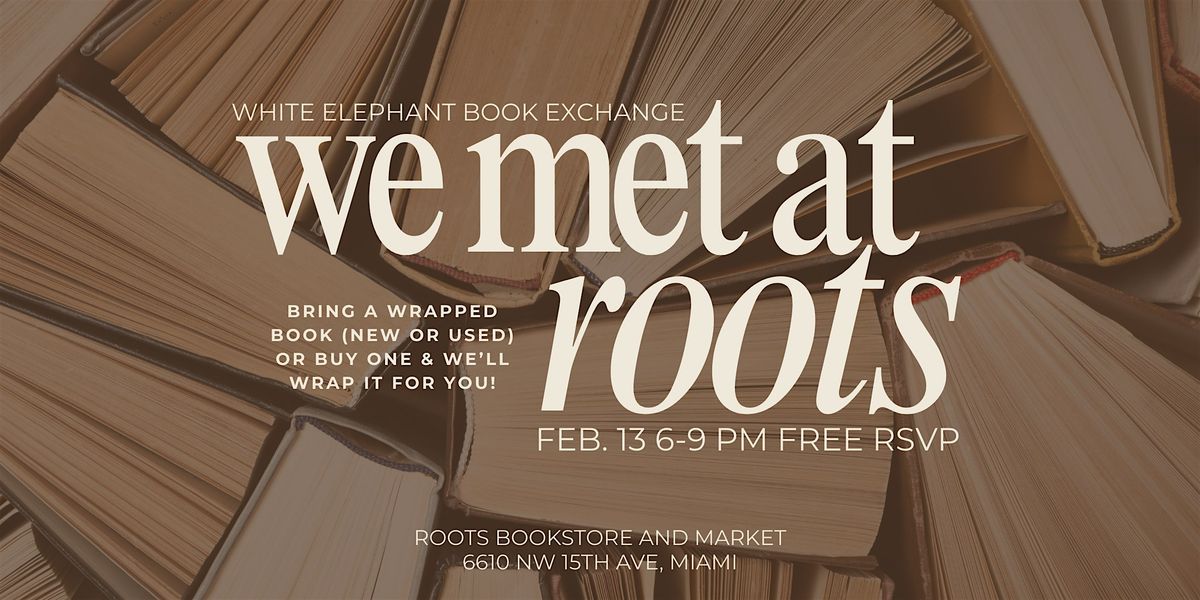 Join us for We Met at Roots, on Friday, Feb. 13, at the Liberty City bookstore for a white elephant exchange designed for adults 21+ seeking new connections.