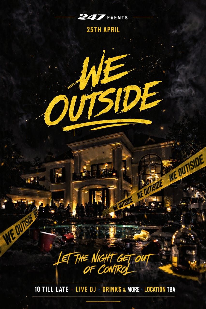 We Outside promises to be a shutdown event - packed room, unmissable energy, straight heat and bangers from start to finish, this will be the houseparty, you don't want to miss out on. If you are inside, tell your friends We Outside on the 25th April.