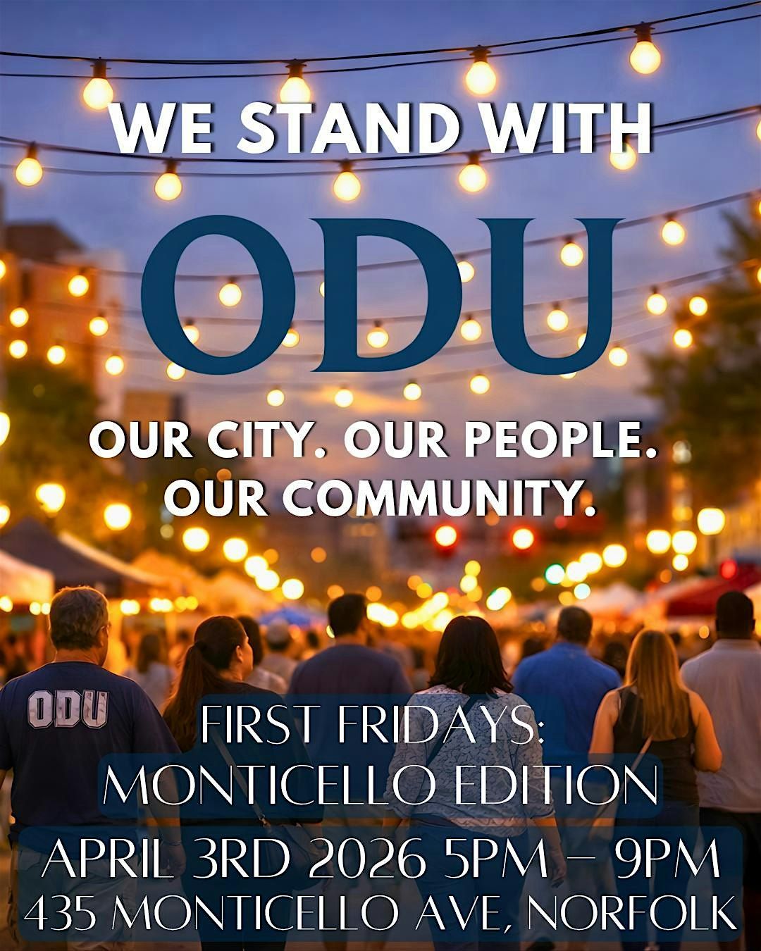 In light of everything impacting our Old Dominion University family, this night is about showing up. Not in silence—but in support. In presence. In community.Right here in our neighborhood, the businesses of Monticello are coming together—