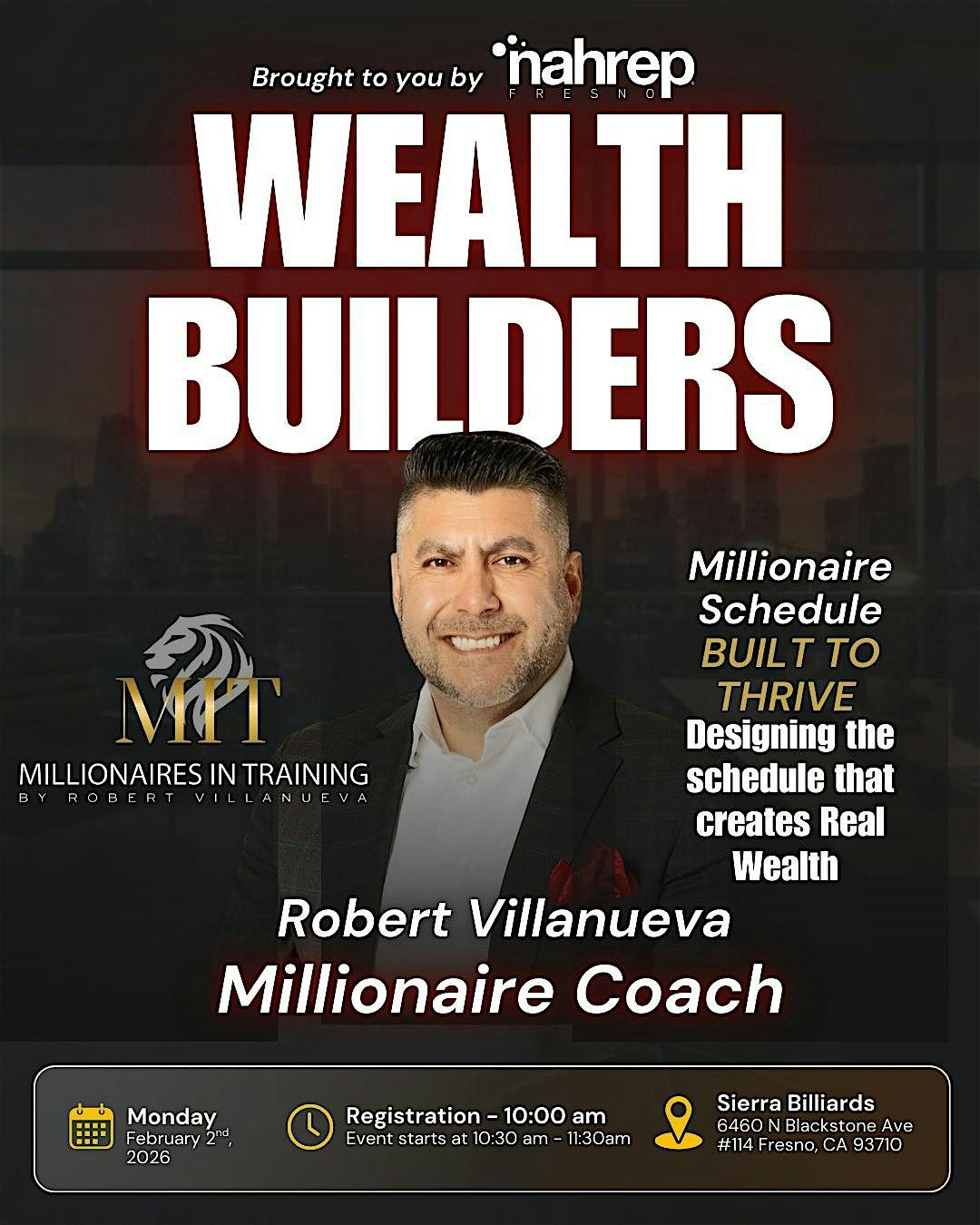 Ready to take control of your financial future? WEALTH BUILDERS is the perfect in-person event where you'll learn practical tips and strategies to grow your money. Connect with like-minded folks, share ideas, and get inspired to build real wealth. Whether you're just starting out or already on your journey, this event is all about empowering you to succeed. Don’t miss out on an awesome chance to boost your financial game!