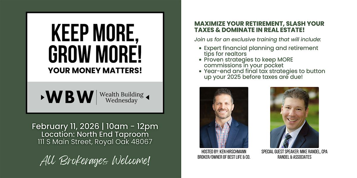 Exclusive training and mastermind with Mike Randel, CPA, who specializes in maximizing tax savings, retirement plans, and strategies for real estate agents and business owners.