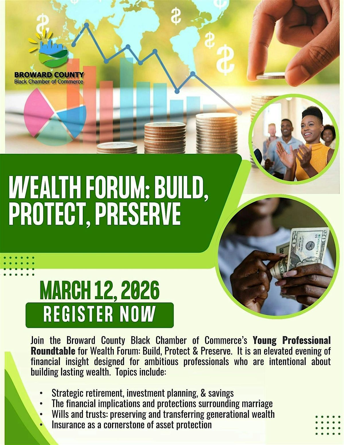 The Young Professionals Roundtable of the Broward Black Chamber of Commerce cordially invites you to an elevated evening of financial insight designed for ambitious professionals who are intentional about building lasting wealth.