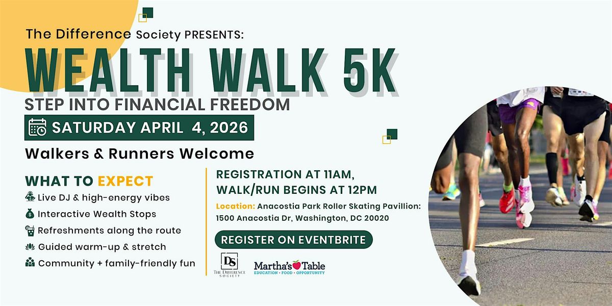 Come along for a walk across the Anacostia River Trail! Step into financial freedom at the 5K Wealth Walk βa free community walk/run focused on wellness, movement, and financial empowerment.