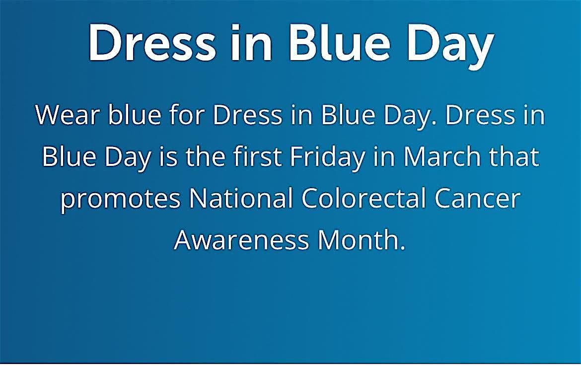 Join us in person to Wear Blue and show your support for Colorectal Cancer Awareness! It's a great chance to connect with others, learn more about this important cause, and make a difference together. Don't forget to wear your favorite blue outfit and bring your positive vibes!