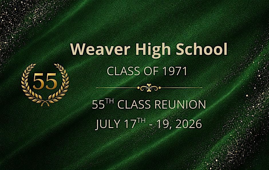 Hey Weaver High friends! It’s time to catch up and celebrate 55 amazing years since graduation. Join us for a fun-filled in-person reunion where stories will flow, laughs will be shared, and memories will come alive. Don’t miss this chance to reconnect and make new memories with old pals. We can't wait to see you there!