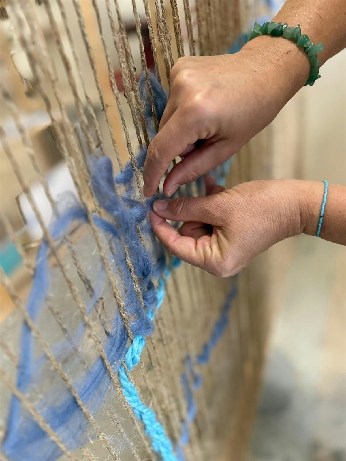 Through step-by-step guidance, participants practice core weaving skills, including warping a loom, executing a plain weave, and experimenting with texture using yarn, fabric strips, and natural materials. Each attendee completes a small woven piece suitable for display as a wall hanging or as a textile sample.