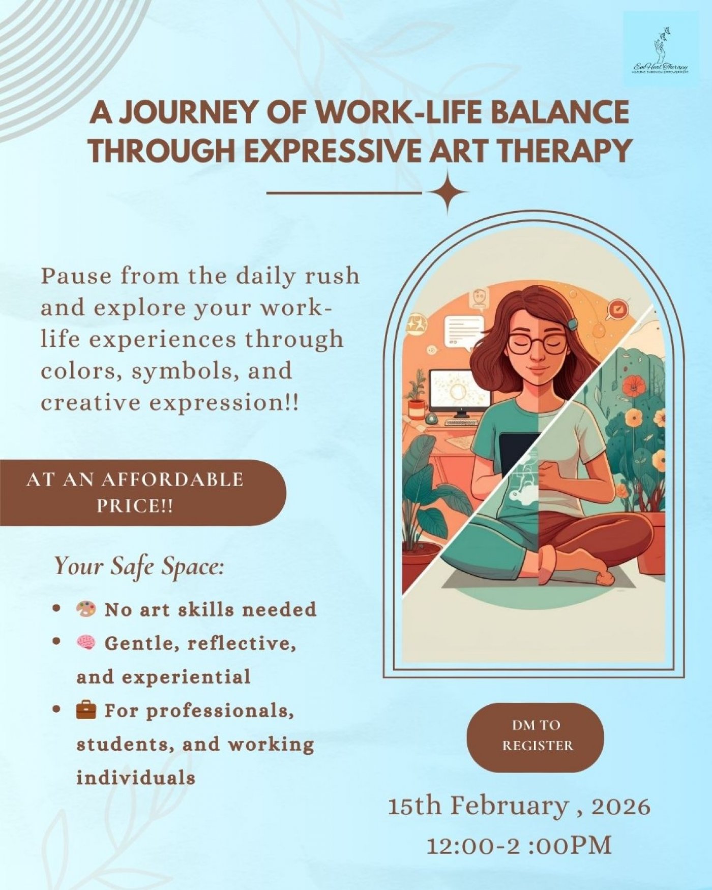 work–life balance through creative expression. Guided activities will help you connect with your emotions, release stress, and gain clarity no prior art experience required. The focus is on self-exploration,not artistic perfection.