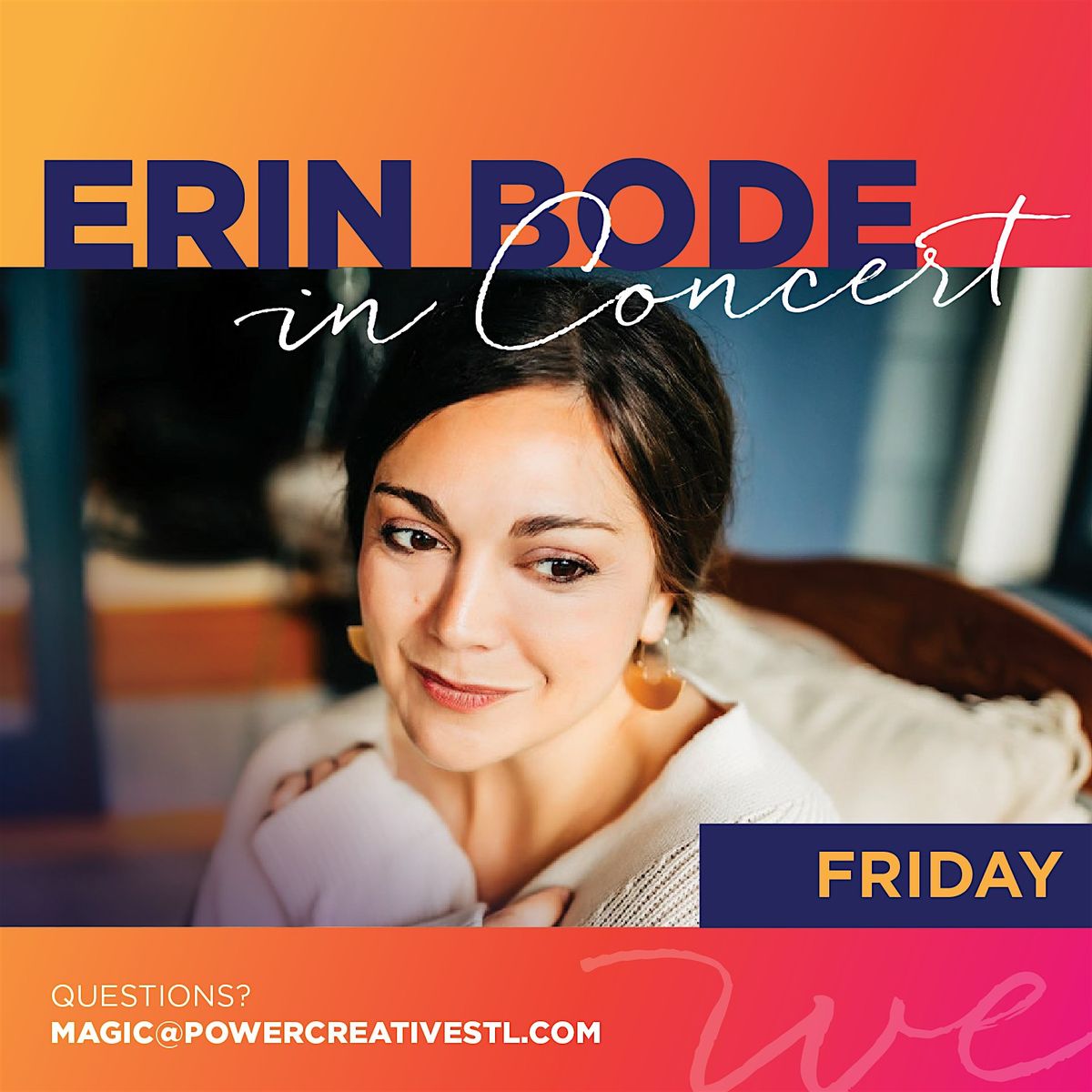 Erin Bode returns to the WEvent space with her signature mix of jazz, blues, Americana, and charm.About this Event