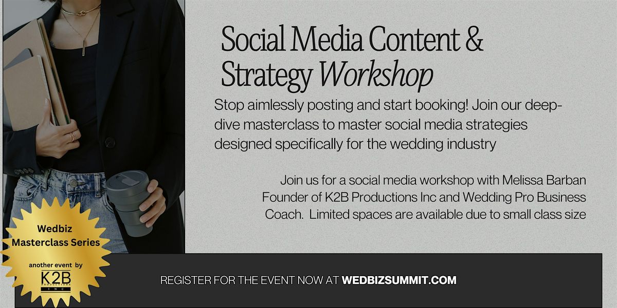 The Wedbiz Pro Masterclass Series: Social Media Strategies is a high-impact, no-fluff session designed specifically for wedding photographers, planners, florists, and venues who are ready to master the "business" side of social media.