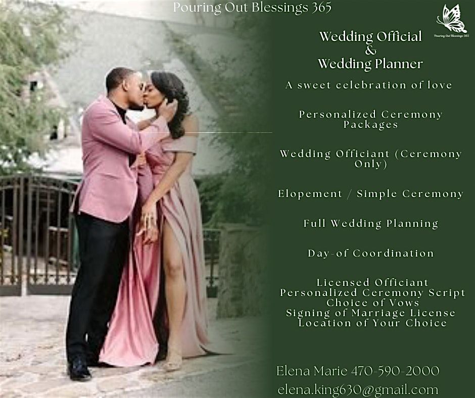 Limited-time special rate for wedding officiant services. Includes consultation and ceremony officiation.About this Event