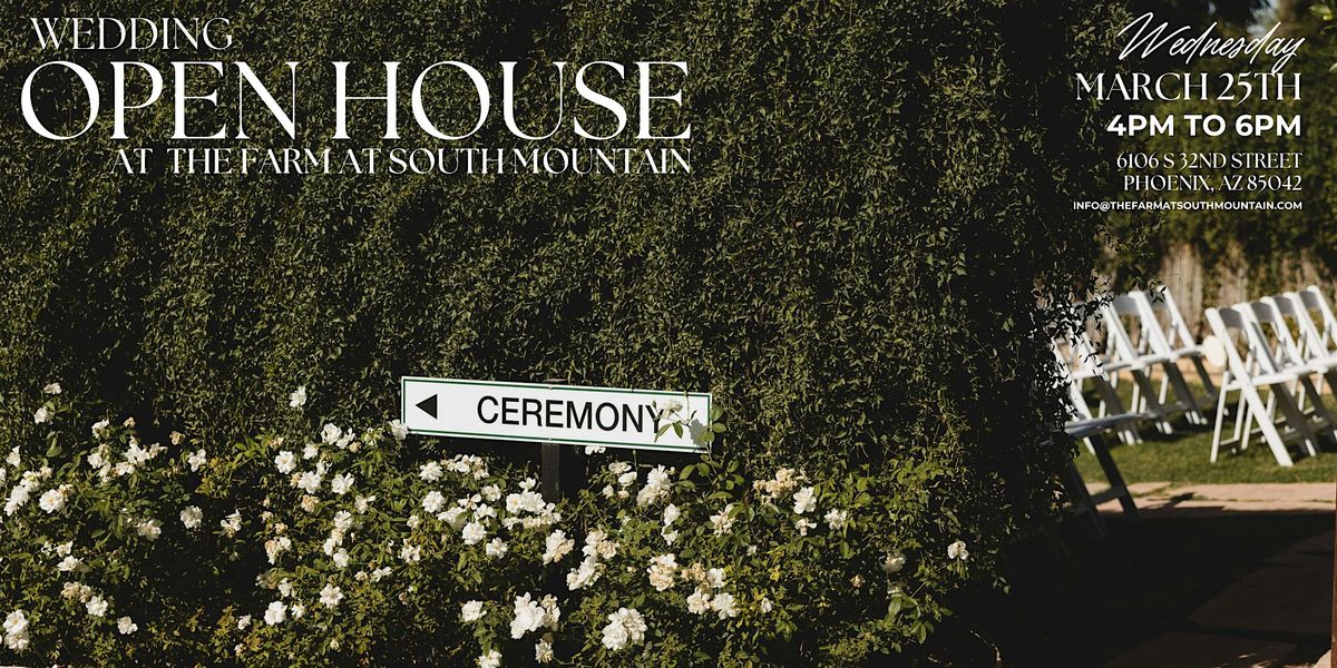 Welcome to the Wedding Open House at The Farm at South Mountain! Join us for a day filled with wedding inspiration and beautiful scenery. Whether you're recently engaged or finalizing your wedding details, this event is perfect for you. Explore our stunning venue, and envision your dream wedding day. We can't wait to help make your special day unforgettable!