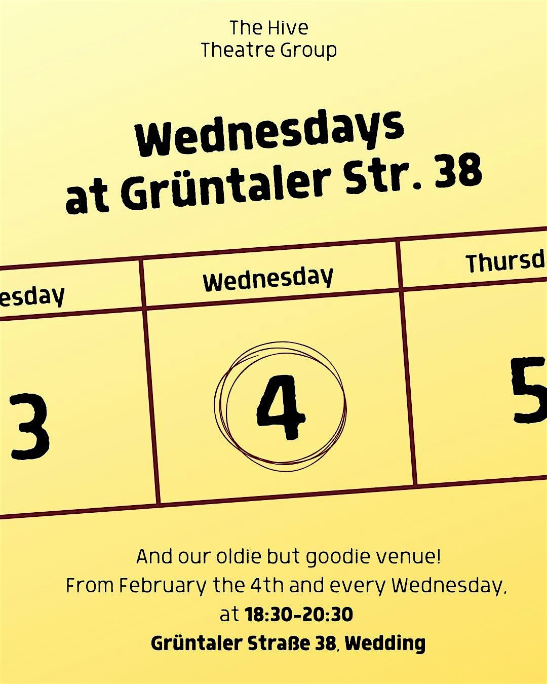 Join us from Wednesday 4rth of February and every Wednesday onwards, at Grüntaler Strasse 38, Wedding, for two hours full with fun and acting!