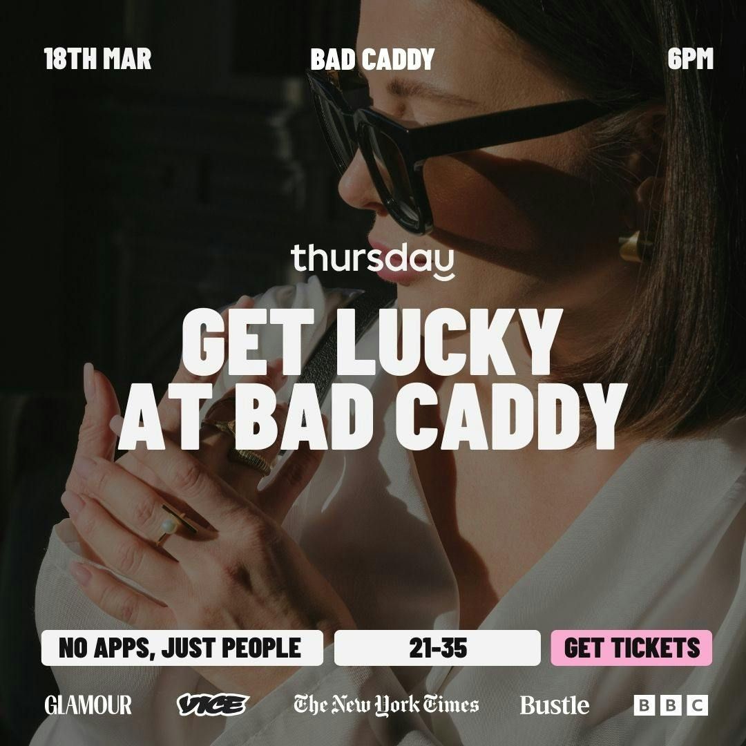 THURSDAY X BAD CADDY: GET LUCKY AT BAD CADDY (21-35)Just a bar, everyone single. Because the world in 2026 is all about meeting IRL, not on dating apps!