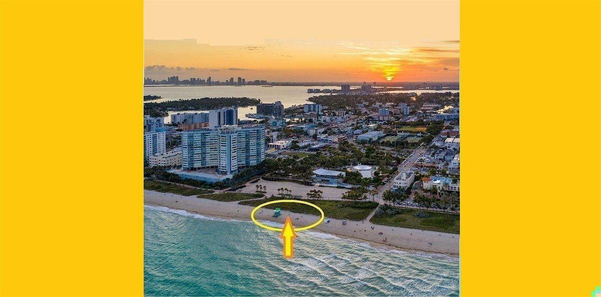 📍Location: on the sand, next to the blue (and green) lifeguard stand, between 72nd & 73rd streets, behind the Miami Beach Bandshell.