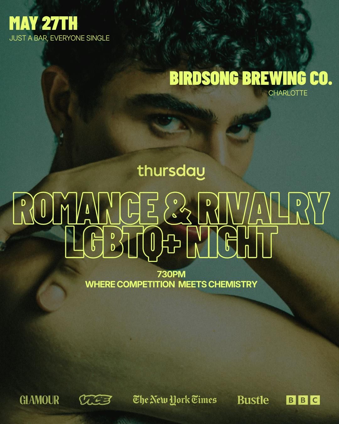 JUST A BAR - EVERYONE SINGLE Charlotte, get ready for a night where sparks fly, tension builds, and chemistry is impossible to ignore. 🔥🌈 Welcome to Romance & Rivalry: LGBTQ+ Singles Night, a special collaboration with Birdsong Brewing Company, created for queer singles who know that sometimes the best connections start with a little competition.