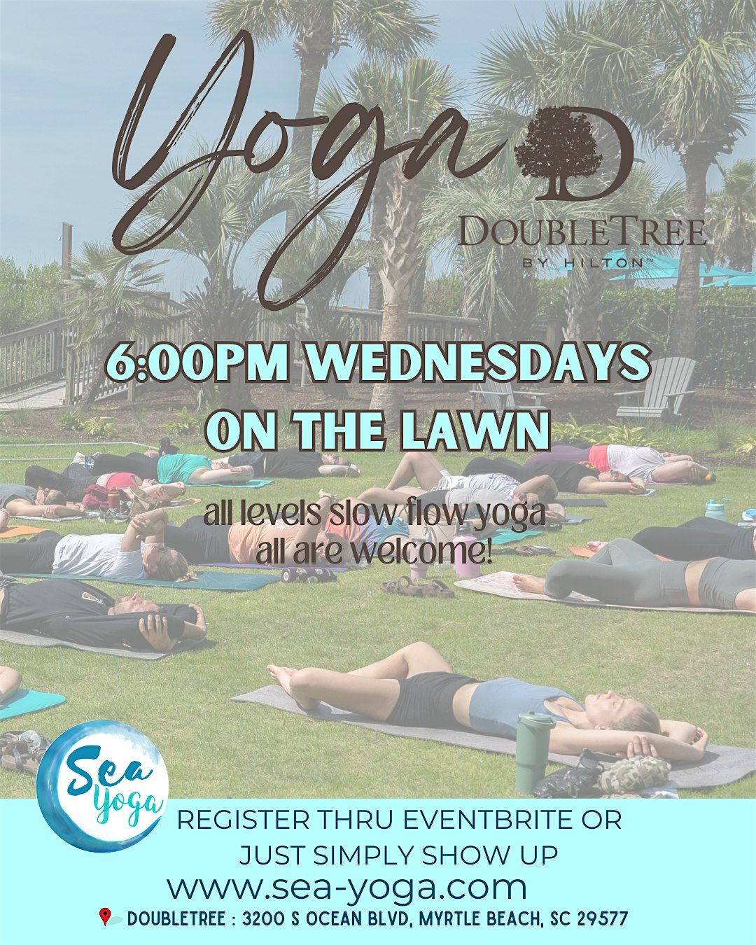 Join us on the lawn at The Doubletree/Ellie resort for an all levels slow flow every Wednesday night starting in April! $15 locals, $20 visitors, kids are free! Walk underneath registration straight out to the Ocean Blue lawn!