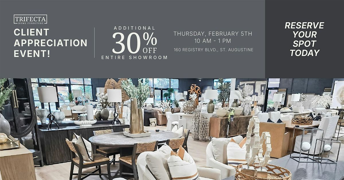 CLIENT APPRECIATION EVENT! Take an additional 30% off the entire showroom ✨