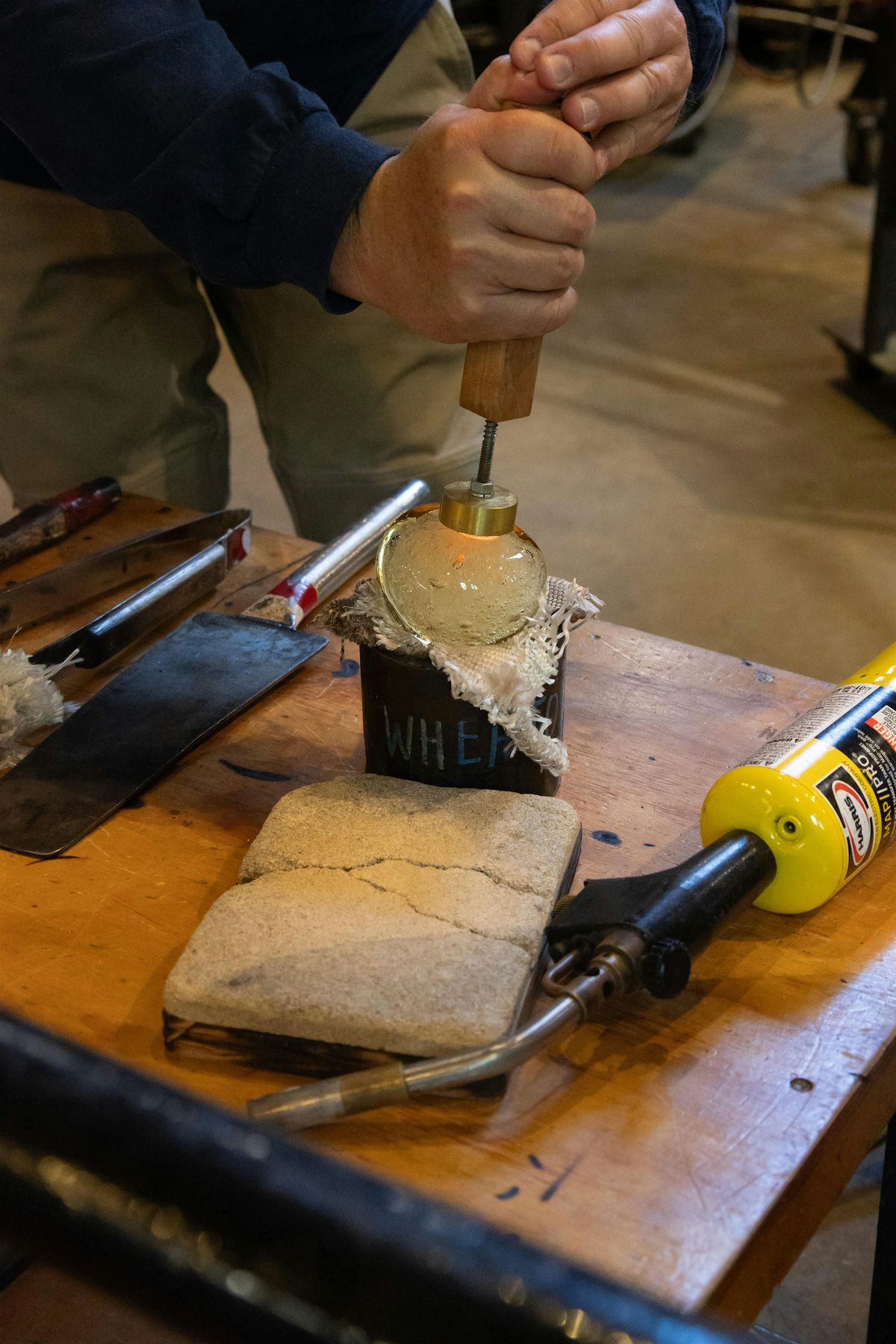 In this beginner-friendly workshop, participants will have an introduction to glassblowing techniques and studio safety. Participants will learn to gather glass, learn about the proper usage of glassblowing tools, create simple blown forms and learn a variety of color applications. Class time will be divided between instruction and hands-on supervised work.