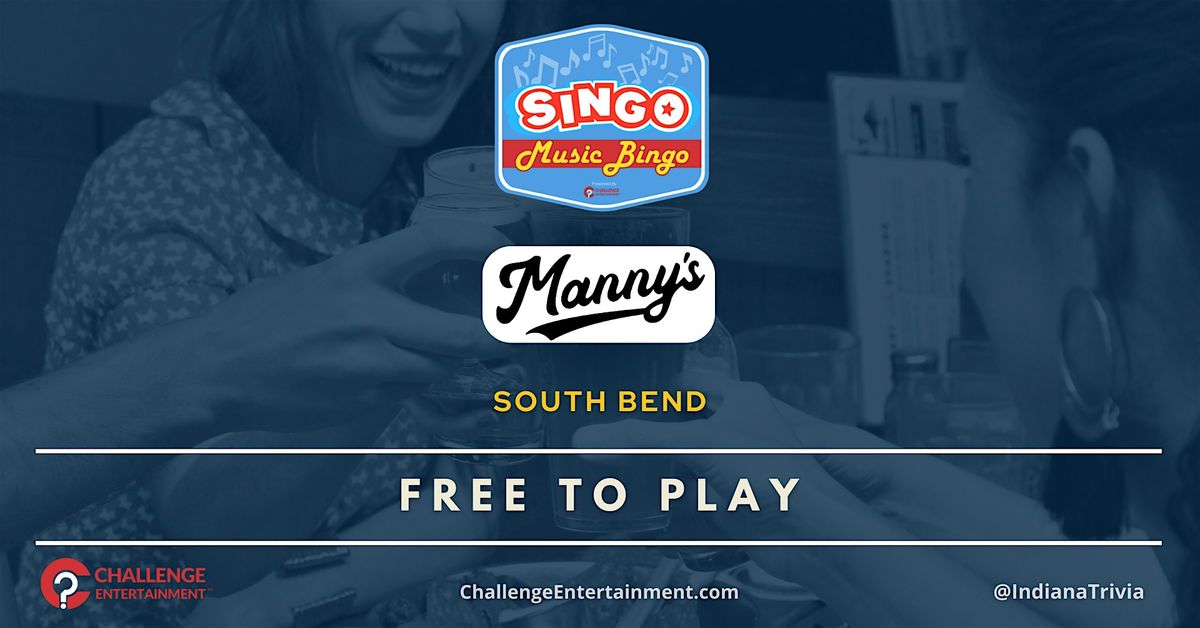 Come join Challenge Entertainment for SINGO "Music Bingo" at Manny's every MONDAY at 7:00PM! Prizes awarded every round! Singo Music Bingo for the WIN!