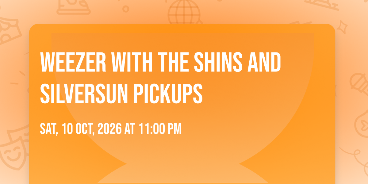 📍 Location: 33.7566, -84.3969🎉 Welcome to Weezer with The Shins and Silversun Pickups, where the impossible becomes possible and dreams take flight! 🏛️ Join us at State Farm Arena in the heart of Atlanta, GA for an event that will redefine your expectations. 📅 On October 10th, 2026 at 11:00 PM, witness the transformation of space and time into something truly magical. ✨ It's a curated experience combining the best of innovation, entertainment, and community spirit, creating moments that will be remembered for years to come. Whether you're a first-time visitor or a seasoned enthusiast, prepare to be amazed. 🎊 Book now to ensure your place in this unforgettable experience!