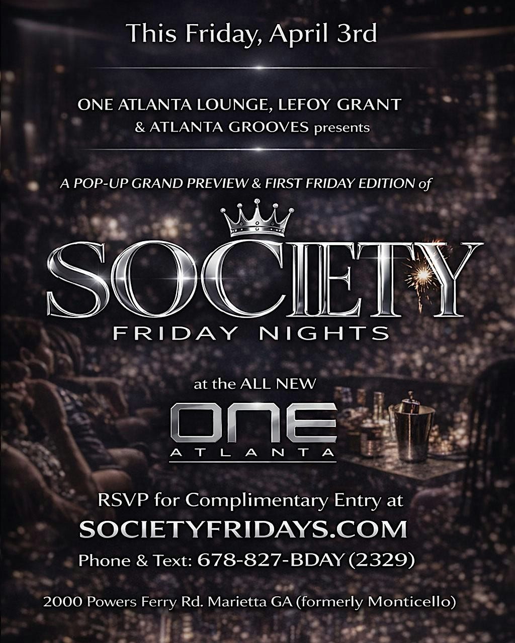 This Friday, experience the debut of SOCIETY Friday Nights. an upscale, high-energy nightlife experience curated for Atlanta’s grown, stylish, and social crowd.