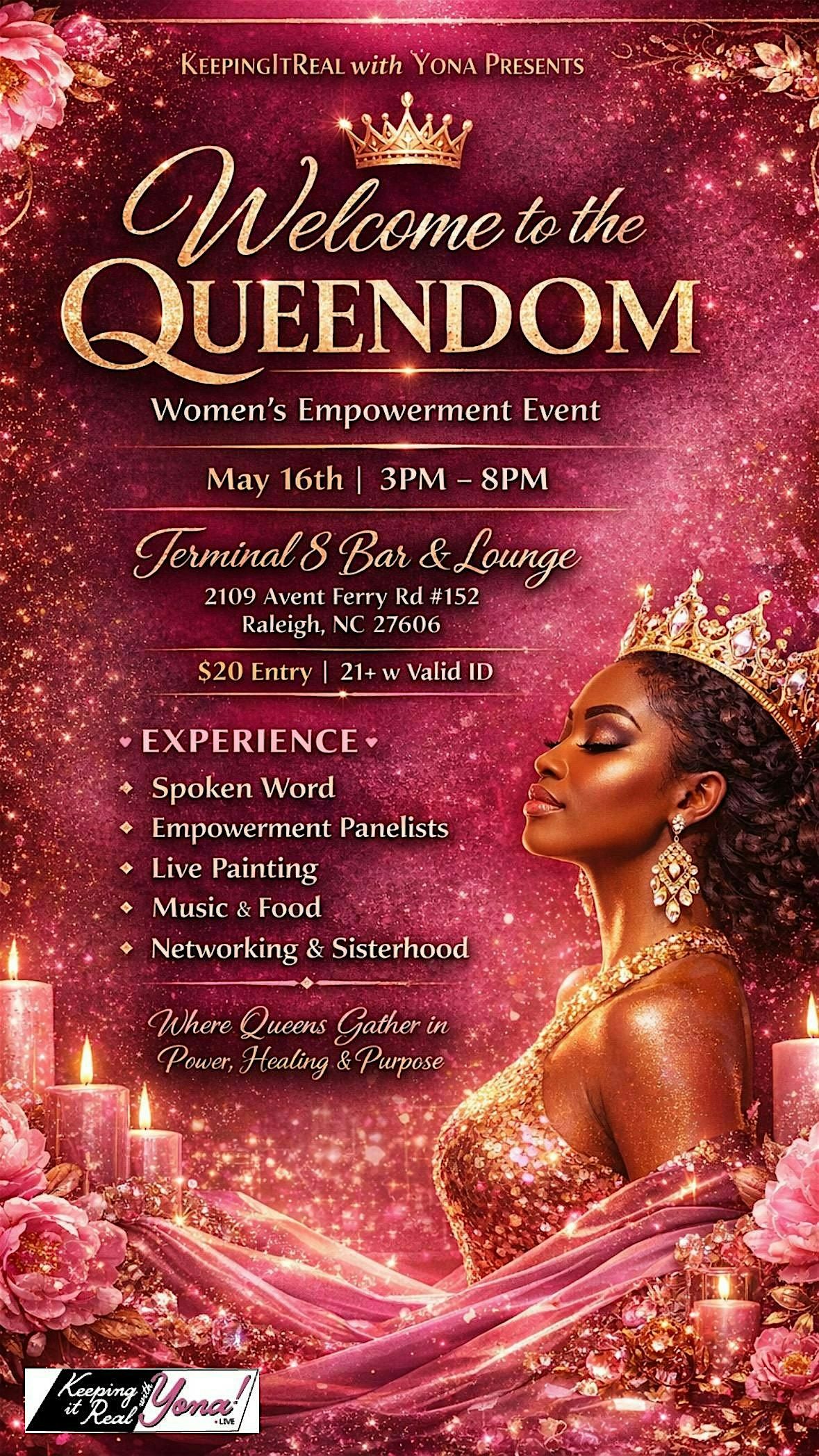 Welcome to the Queendom: a womenβs empowerment event with spoken word, panelists, live art, music, food, and sisterhood. May 16.