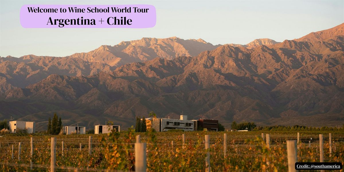 Hosted by Welcome to Wine School, this Argentina + Chile tasting is designed to help you taste what actually separates these two neighbors on opposite sides of the Andes: altitude vs. ocean influence, bright vs. bold, and the signature grapes that make each country unmistakable.