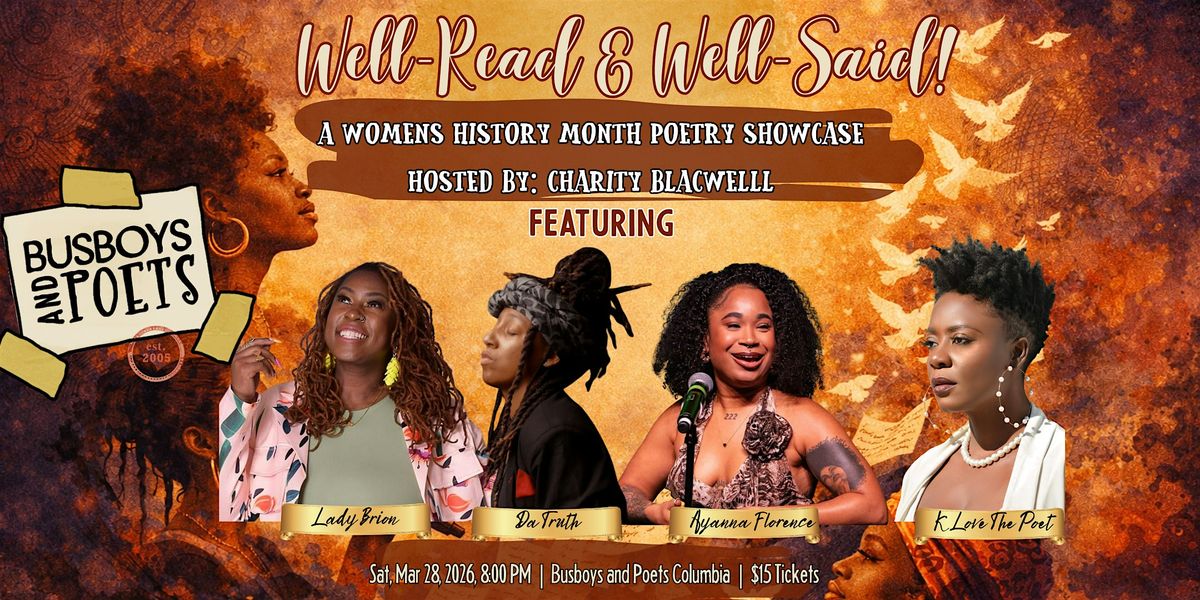 WELL-READ & WELL-SAID is a curated evening of nationally recognized poets whose voices are as studied as they are seasoned. These are women who have competed, taught, published, organized, and shaped culture. They are scholars of language and architects of lived experience.