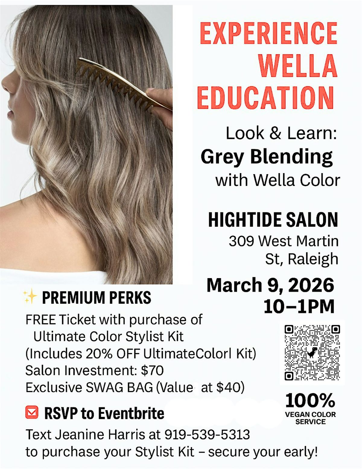 Join Wella for an exclusive Look & Learn featuring a live model demonstration focused on modern gray blending techniques. Discover how to expertly manipulate our color portfolio to create seamless, natural-looking blends. Gain formulation guidance, refine your gray blending approach, and be inspired by Wella’s newest color trends for 2026. Text Jeanine Harris, Wella Account Manager, to confirm your class ticket.
