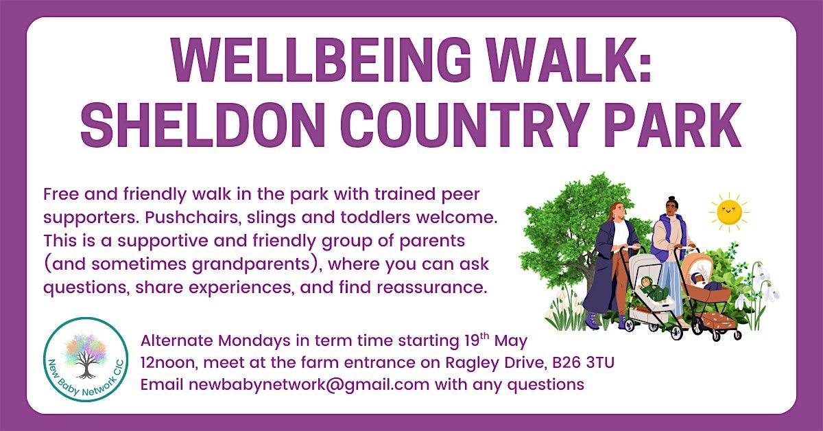 Join our wellbeing walk at Sheldon Country Park on alternate Mondays in term time starting 19th May (on the other weeks we are at Shirley Park)