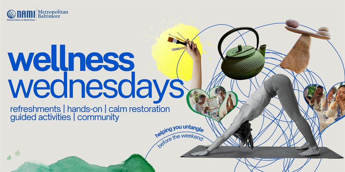 Join NAMI Metro Baltimore for Wellness Wednesday, a welcoming and low-pressure space where you can slow down, connect with others, and explore simple practices that support your mental health. Each session offers a chance for you to check in with yourself and leave feeling more grounded, supported, and ready for the rest of your week.