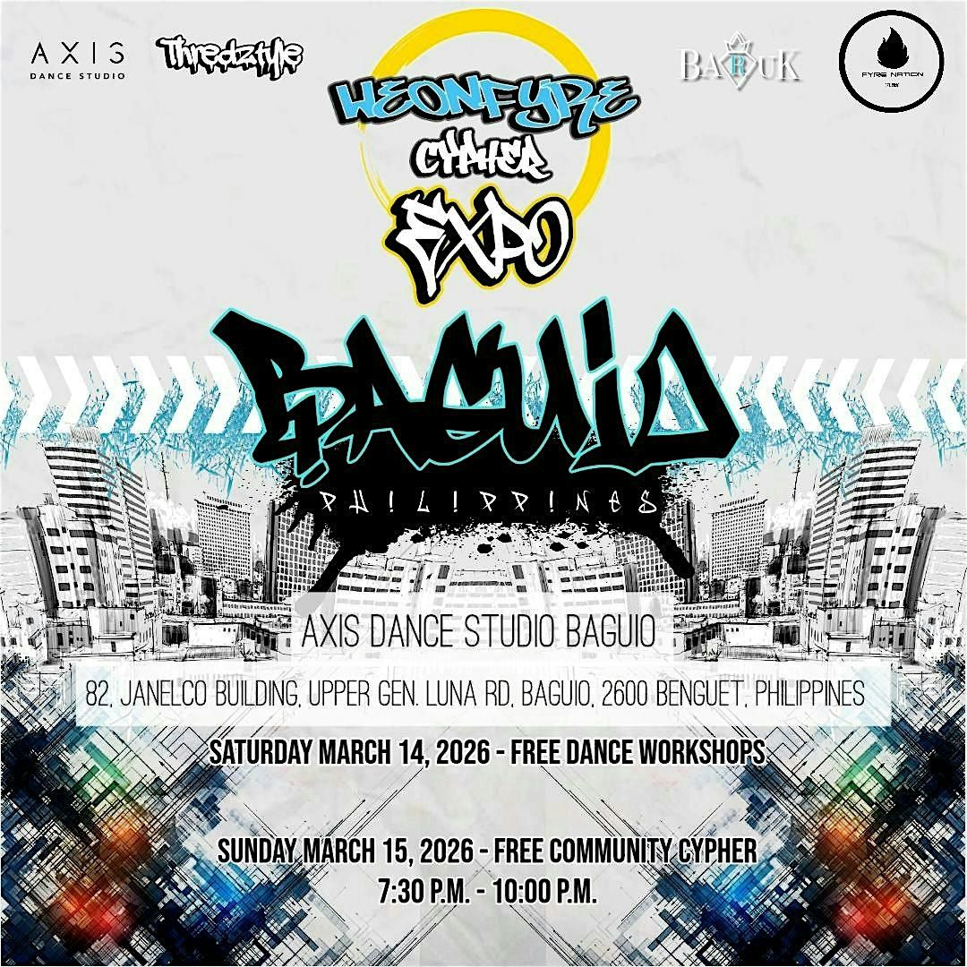 WeOnFyre Cypher is once again going INTERNATIONAL! We are teaming up with Axis Dance Studio Baguio and bringing our monthly, free, family-friendly community dance cypher and networking events to Baguio City for March 14th-15th, 2026!