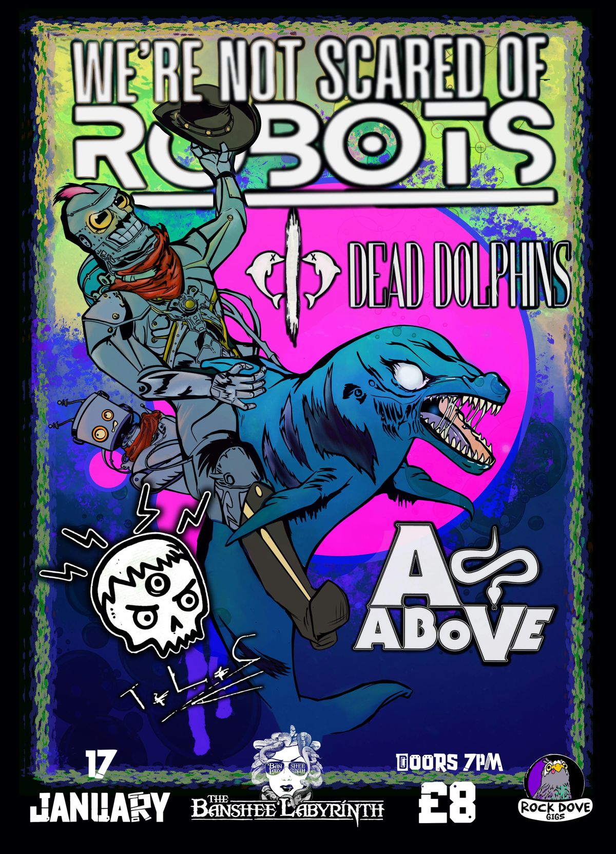 ‘We’re Not Scared Of Robots’ are an unapologetically energetic punk/rock band with a leave it all on the stage attitude, infusing their music with the spirit and passion that defines punk-rock. Led by Adam on guitar and vocals, Gordon on lead guitar, Spanky on bass/bk vocals, and Gaz on drums/bk vocals.