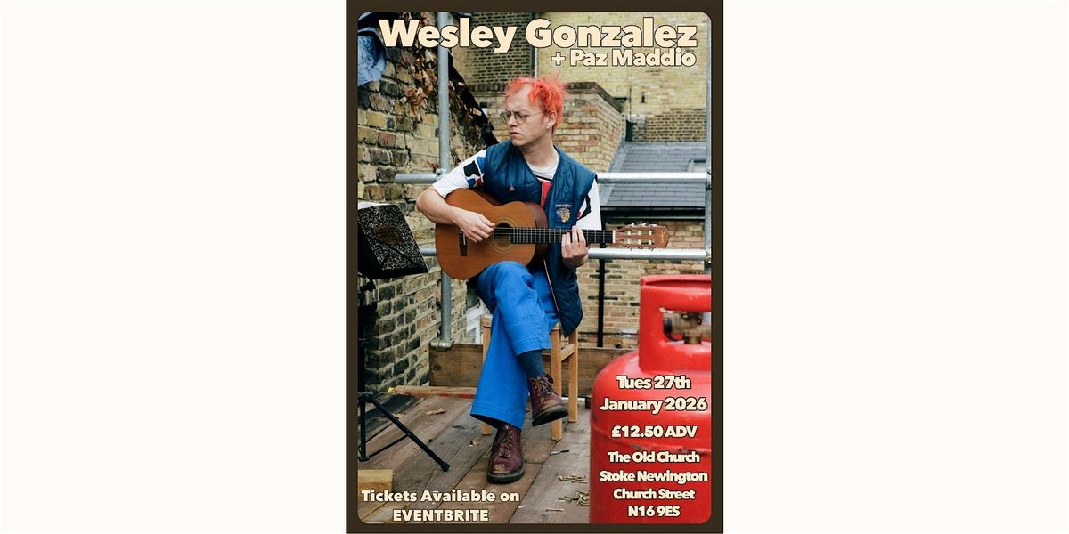 Wesley Gonzalez comes to The Old Church on Stoke Newington Church Street to perform songs from his 3 solo albums as well as debuting new material on nylon string guitar accompanied by multi-instrumentalist Callum Duffy.