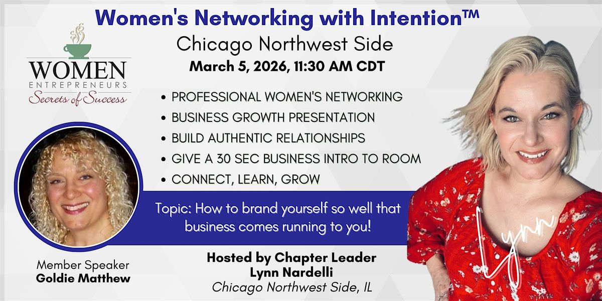 Join us on Thursday March 5, at 11:30 am, to hear from featured member speaker Goldie Matthew and meet other female entrepreneurs, solopreneurs, business owners, and professionals to network, learn, and collaborate